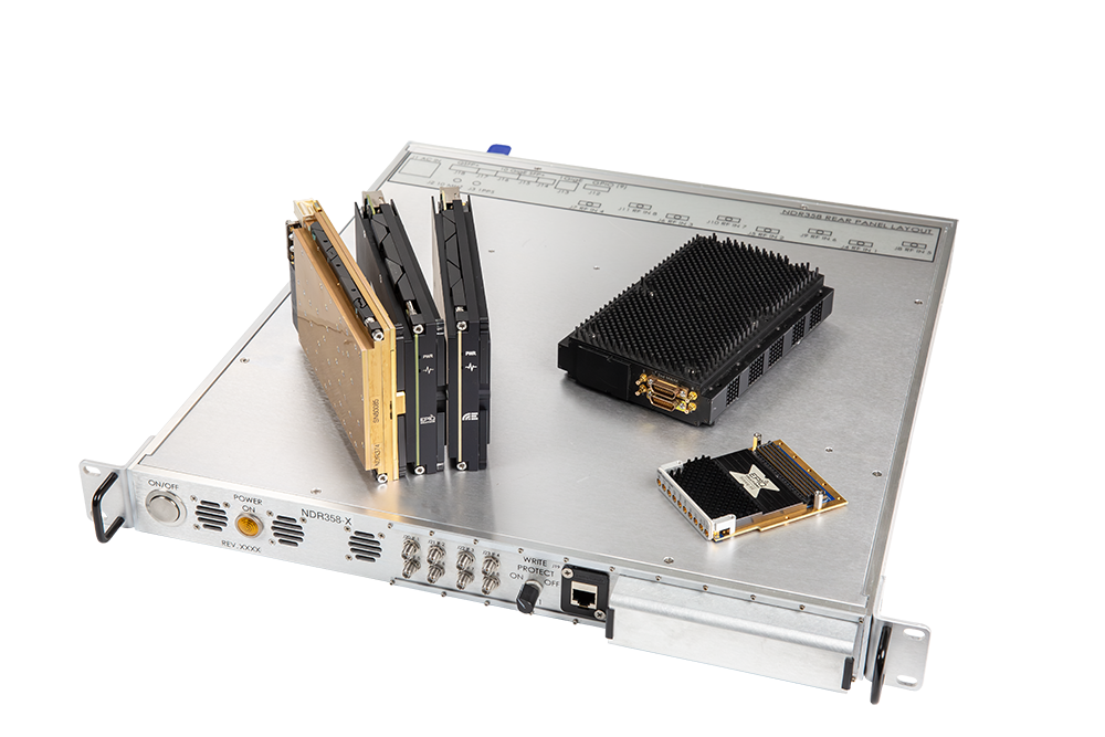The NDR325 is a software-defined radio packaged in a Modular Payload (Mod Payload) Design Standard, Rev. 5.0 compliant 1U form factor. It includes a 4-channel, superheterodyne tuner that covers RF signals from 20 MHz to 6 GHz, and each channel provides a 500 MHz instantaneous bandwidth.