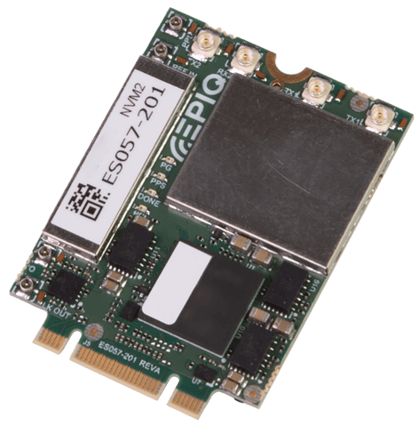 Sidekiq NVM2 is a highly flexible RF powerhouse optimized to tackle your most challenging signal environments. This embeddable SDR-based RF transceiver comes in a tiny M.2 3042 Key B + M form factor that allows it to be used in millions of host devices where PCIe-based NVMe® solid state drives (SSDs) are supported. Sidekiq NVM2 leverages Analog Devices’ ADRV9004, a wideband transceiver RFIC that delivers extended RF tuning capabilities, as well as exceptional RF fidelity and instantaneous dynamic range. Multiple RF operating modes are supported, including SISO, dual band SISO, MIMO, and phase coherent Rx or Tx. The NVM2 is supported by Epiq Solutions' libsidekiq API, enabling rapid customer development.